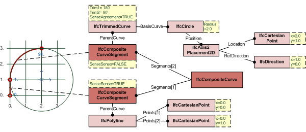 | 1 | Segments | IfcCompositeCurveSegment | L[1:?] | The component bounded curves, their transitions and senses. The transition attribute for the last segment defines the transition between the end of the last segment and the start of the first; this transition attribute may take the value discontinuous, which indicates an open curve. | X |