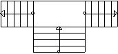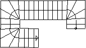 | DOUBLE_RETURN_STAIR | A stair having one straight flight to a wide quarterspace landing, and two side flights from that landing into opposite directions. The stair is making a 90° turn. The direction of traffic is determined by the walking line. |