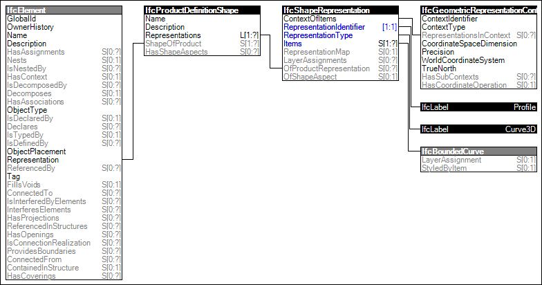 The Profile 3D Geometry is the standard representation of the outer profile for elements filling an opening. Examples of such elements include doors and windows. In the case of doors and windows the profile geometry is used to apply the parametric definition of lining and panel dimensions to the profile.